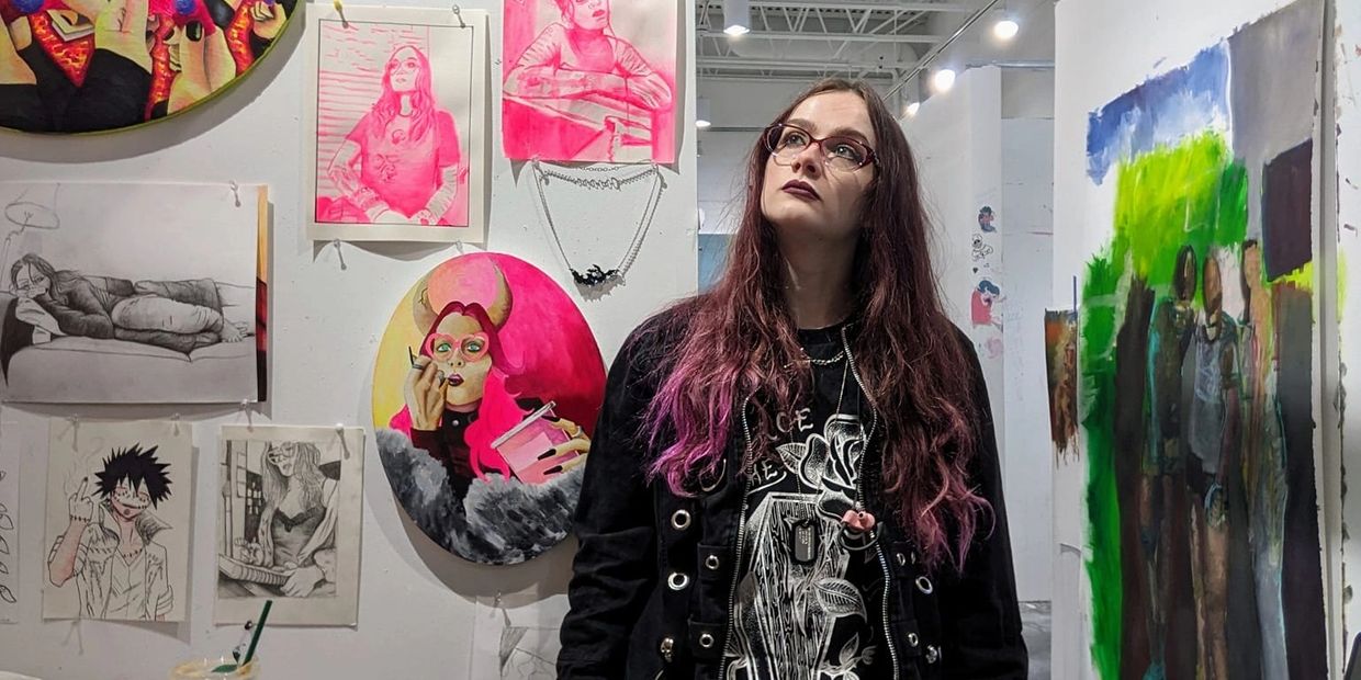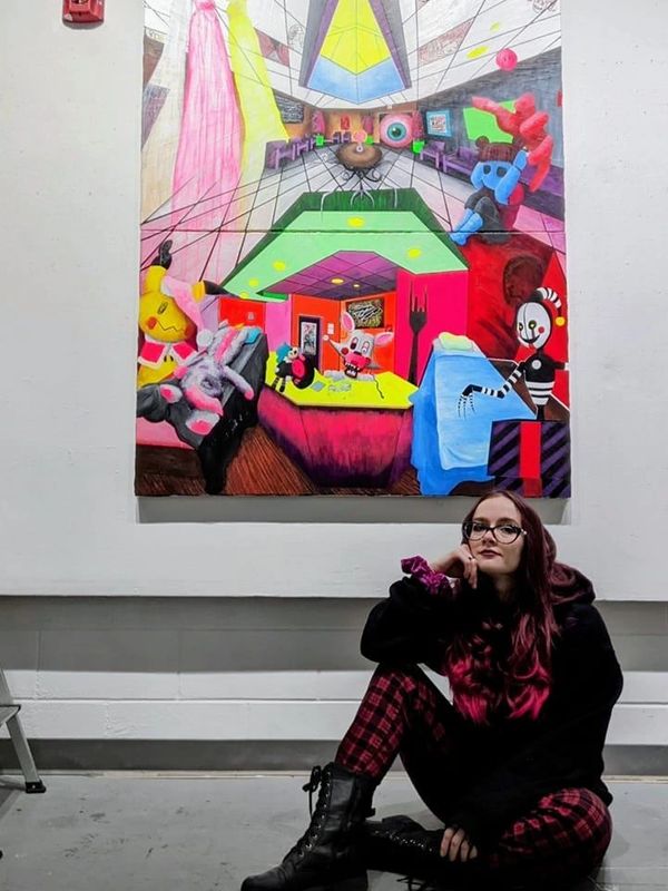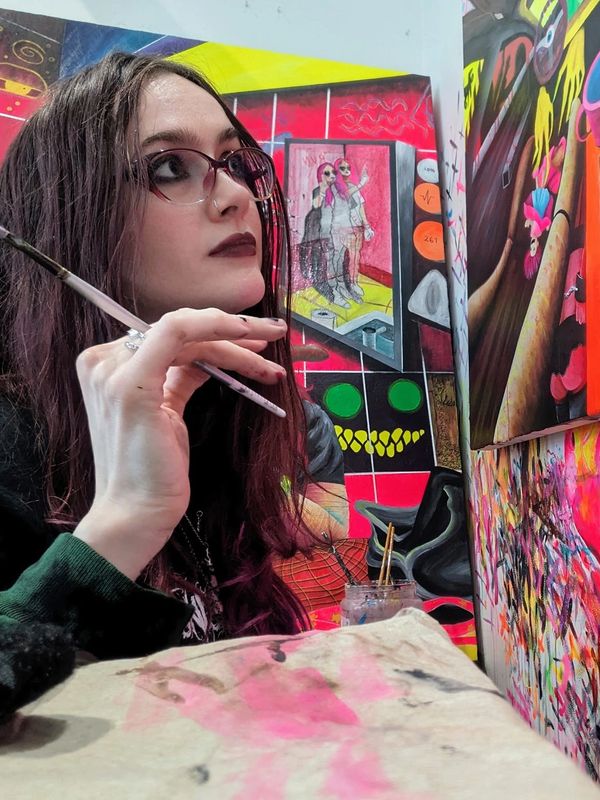 Ophelia Zady is a practicing artist in Central Florida who graduated with a BFA in Studio Art with a painting specialty and a minor in art education from the University of Central Florida in 2024. She taught art to children ages 3-13 for 5 years before returning to University with the goals of improving their professional practice and becoming a college art professor. Ophelia creates mindscapes that depict her dissociation, trauma, and psychosis in the form of detailed large scale acrylic paintings.